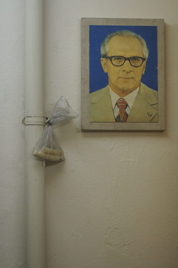 In der „Runden Ecke“ hängt dieses Bild von Erich Honecker. Die Runde Ecke war die Bezirksverwaltung der Stasi in der DDR. Die KI zeichnete das Bild mit Wasserfarbe.