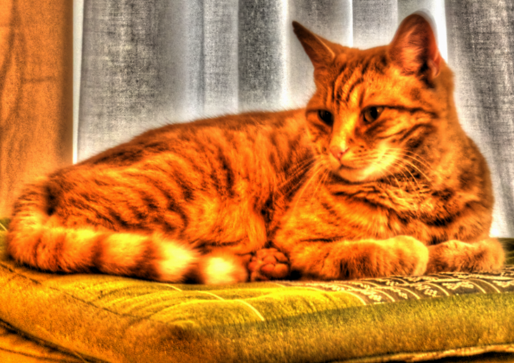 Hier eine Überraschung: Die Katze, im Original als HDR-Bild überarbeitet, sieht als KI-Bild realistischer aus.
