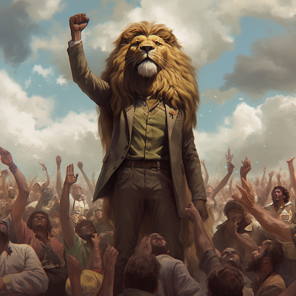 „Make Me Proud“ – der Algorithmus zeigt mal wieder, was er kann. Stolz? Klar, ein Löwe. Majestätische Pose, stimmiges Gesamtbild.