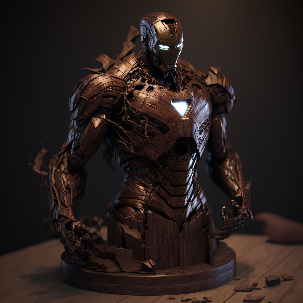 Hier eine kleine Serie: Iron Man aus verschiedenen Materialien. Oben: Kupfer, der Rest kann sich auch sehen lassen.