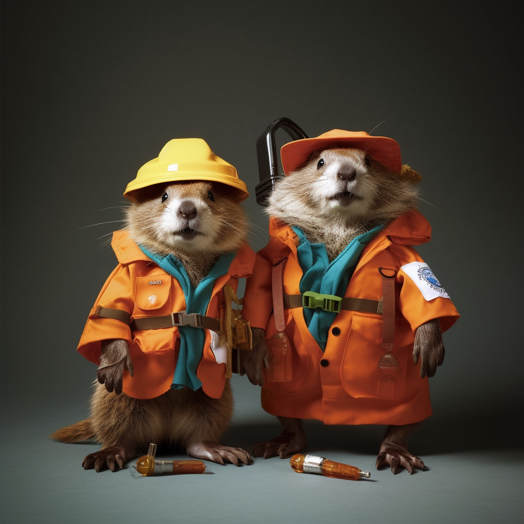 Sie stehen sofort bereit, wenn sich Kleintiere verletzen – die „Beavers Dressed As Paramedics“. Inspiriert sind sie von der Zeichentrickserie „Rockos modernes Leben“.