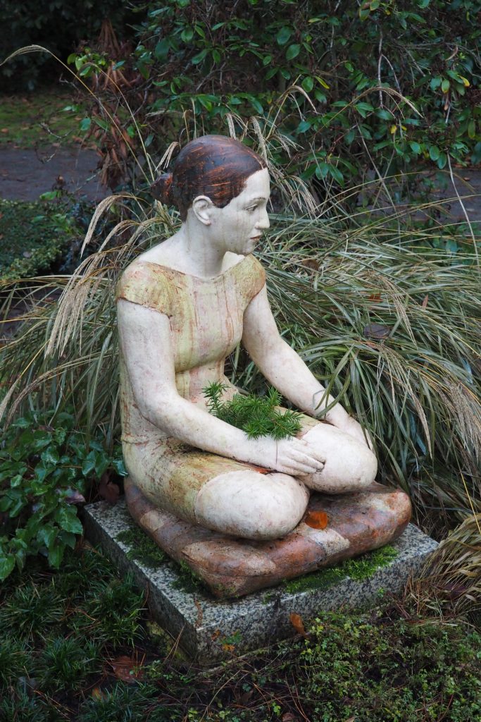 Diese sitzende Frau habe ich auf dem Leipziger Südfriedhof entdeckt – und sie als Aquarell interpretieren lassen.